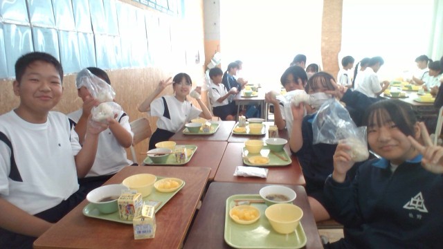 防災の日献立 公開日 2025/09/04 更新日 2025/09/04 芝園の一日 9月1日の「防災の日」にあわせて、富山市で防災給食を実施しました。食品保存用袋にご飯とふりかけを入れ、袋の上から握っておにぎりをつくりました。食器の代用品を活用することで、災害時に貴重な水の使用を節約することができます。