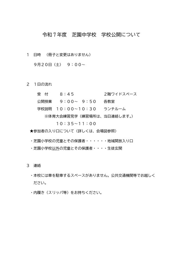 9月20日(土)学校公開日の日程について