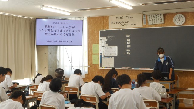 1年生では総合的な学習の時間において「富山県の魅力発見」として、思い思いが不思議に思ったことを仮説を立てながら探究してきました。