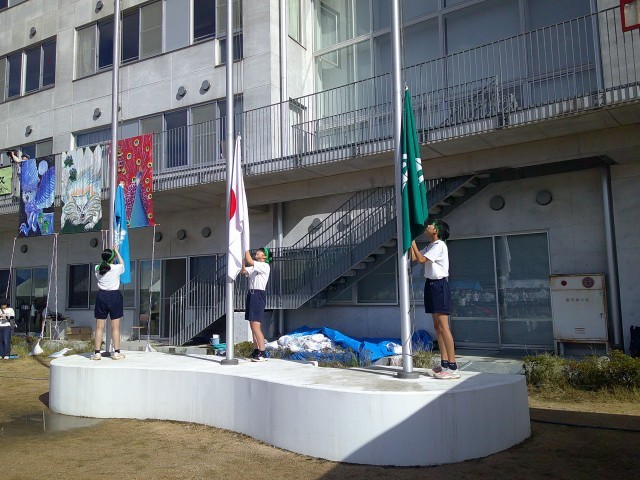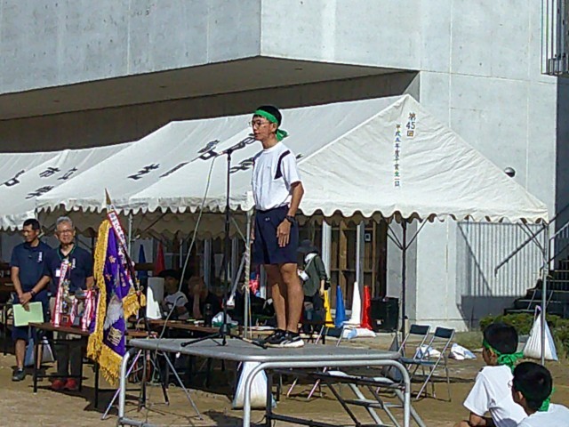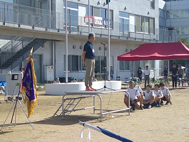 スローガン「古今無双~轟け 我ら芝園魂~」の下、体育大会が無事始まりました。一日遅れの開催ですが、気合は十分です。