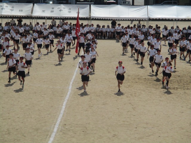 いよいよ体育大会もクライマックスです。旭日団の演技からスタートしました。緊張の中にも、やる気がみなぎる大きな声でスタートしました。