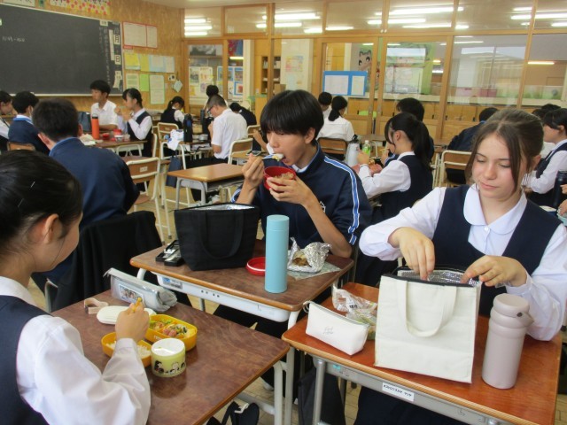 富山県中学校教育課程研究大会のため、3ーCはお弁当でした。