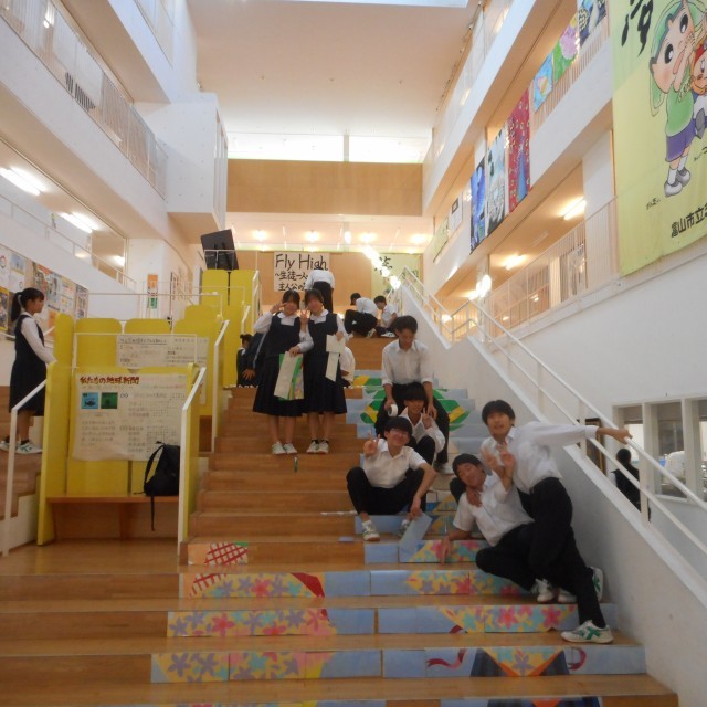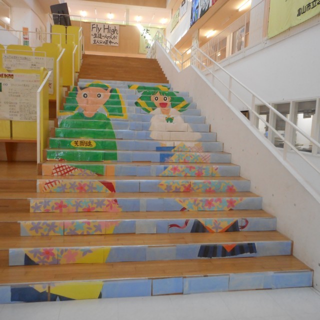 先週金曜日、生徒の皆さんの手によって大階段アートが完成しました。