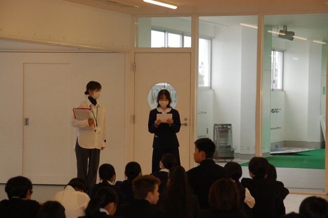 1年生は、明日の高岡校外学習に向けて結団式を行いました。