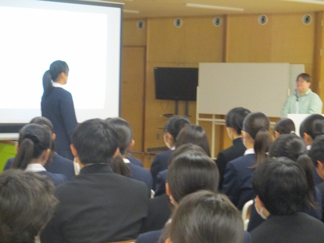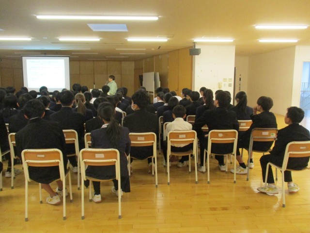 2学年 産婦人科医による講演会 公開日 2025/11/18 更新日 2025/11/17 芝園の一日 女性クリニックWe富山から産婦人科医鮫島先生をお招きして、講演会が行われました。講演会では、多様化している生徒の健康問題について、医学面から正確な情報を教えていただき、望ましい行動を選択し、自分の人生を大切にする生き方につなげられるようにとお話がありました。今日教えていただいたことを、今後の生活に生かしていきましょう。
