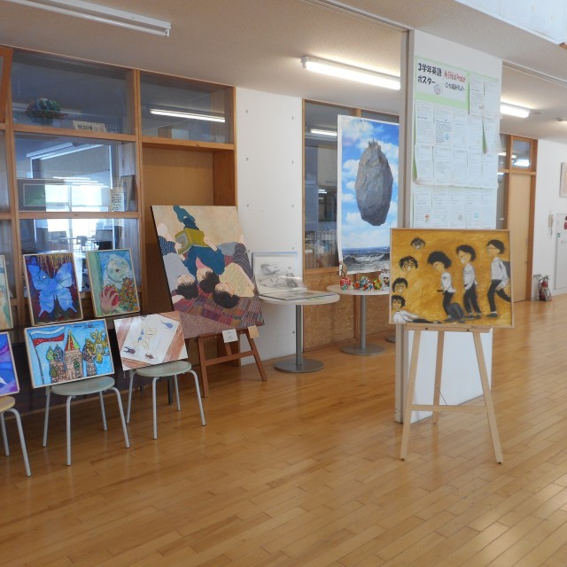 大階段上のスペースを歩くと、たくさんの作品が展示してありました。