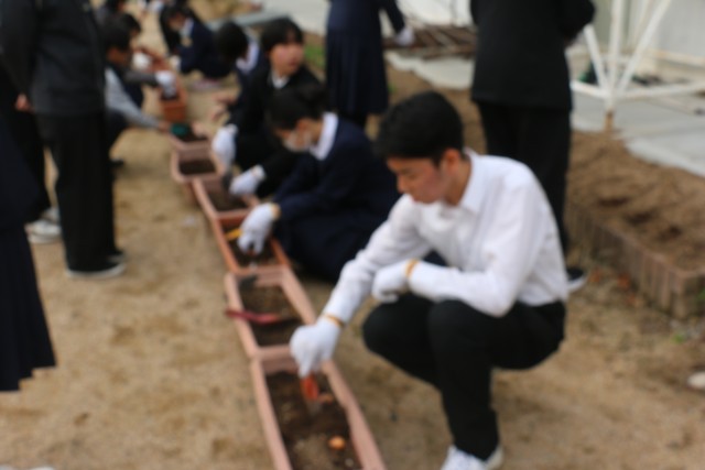 環境委員会で、ライオンズクラブからいただいた球根を植え付けを行いました。
