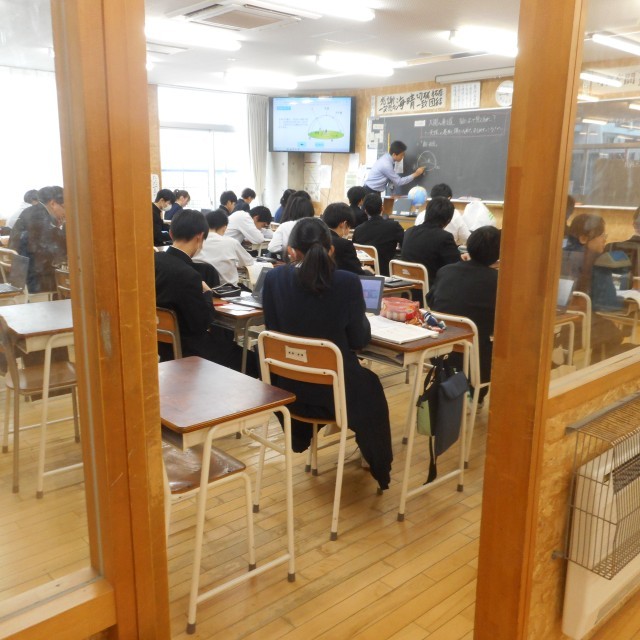 【中央】3年 理科 天体の説明に真剣に聞き入っていました。