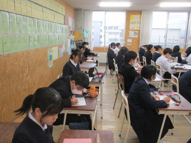 6限は、映像資料も活用して、「日中戦争」や「太平洋戦争」等、日本が関わった戦争について知ることで、今私たちが「平和学習」を進める意味について考えました。冬休みには、民間人を巻き込んだ戦争について、身近な人に話を聞いたり、図書資料やネット情報を使ったりして、その被害や悲しみについて調べる予定です。今後、平和学習を進め、来年度は、広島でさらに学びを深めたいと考えています。