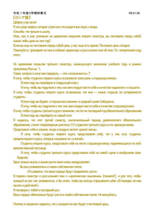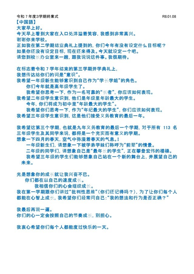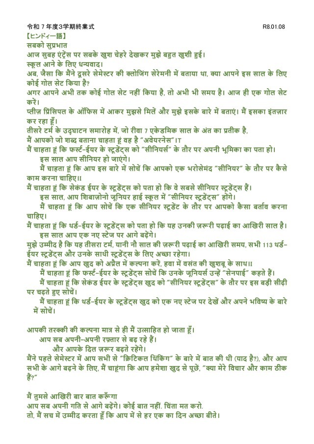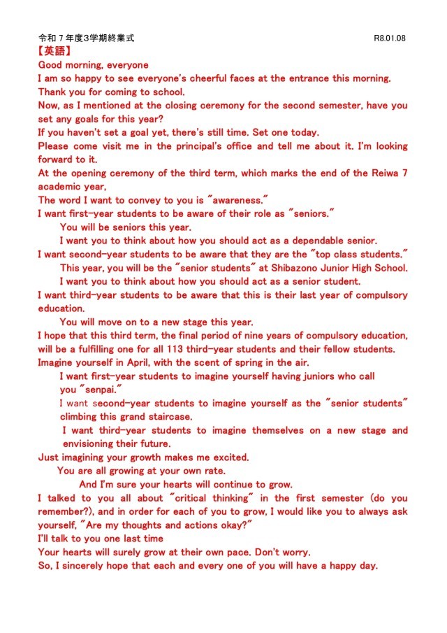 3学期始業式の式辞