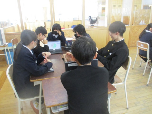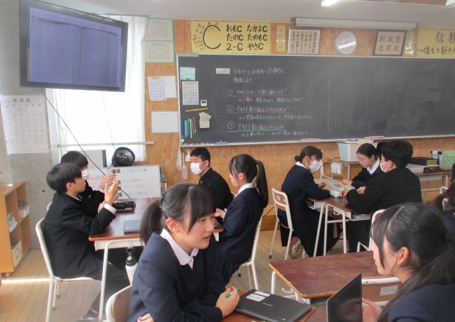 2学期からスタートしているテキスト学習ですが、取り組み方が様々で、分からないときはただ答えを写してしまったということもあったようです。お互いの取組を紹介し、どんな方法が効果的であるかを考えました。答えを書くノートにポイントを付箋で貼ったり、本体そのものに、確認テストで出た問題を色付けしたり、また別のノートにまとめをもう一度している人もいました。自分に合った方法を見付け、実践していきましょう。