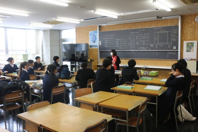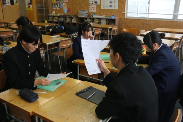 今回は、3年生の代表生徒が、1年生の授業準備の仕方や授業に取り組む様子を観察し、より質の高い学習集団になるためのアドバイスを考えました。