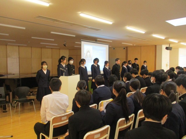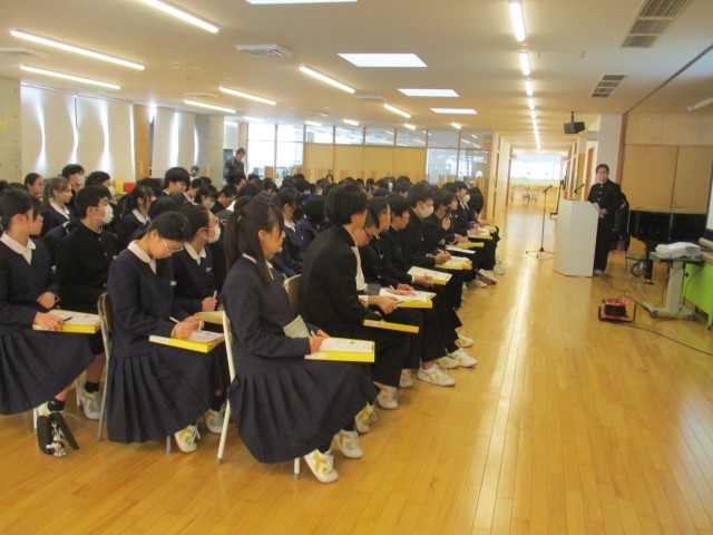 2学年 学年集会 原子爆弾について 公開日 2026/01/26 更新日 2026/01/26 芝園の一日 修学旅行実行委員会平和チームによる「原子爆弾」についての学年集会を行いました。平和チームのメンバーが調べた内容を聞き、原爆の仕組や威力、広島での被害をワークシートに記入しながら、進められました。どんなことを感じ、どんなことを考えたのでしょうか。これからも平和学習を進めながら、自分たちが担う未来を考えていく予定です。