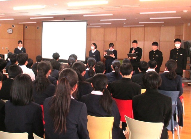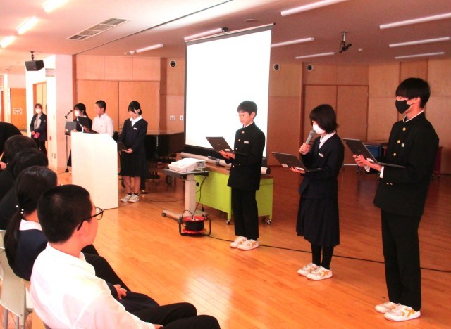 今週月曜日に行われた芝中プライド第2弾では、3年生が1年生の授業を参観し、その後1年生にアドバイスをしました。その際、2年生からは、各クラスのGSSのメンバーが代表して3年生が1年生にアドバイスする姿を見に行き、最上級生となる自分たちは、何を3年生から学び、どう行動をしたらよいのかを考え、今日その報告を学年集会で行いました。3年生0学期の今、みんなで学年を高めていくよい機会になりました。