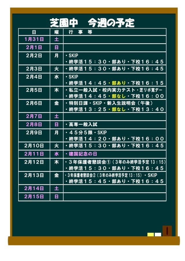 1月31日~2月15日の予定