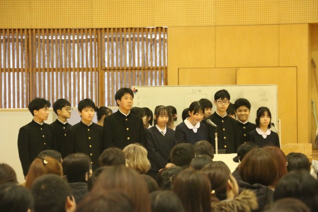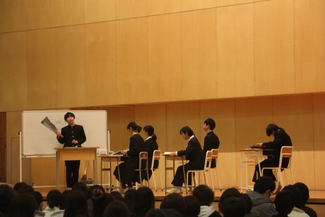 生徒会執行部から中学校での生活について劇を交えながら説明を行いました。1年GSSからは、中学校に入学してからの生活を振り返り新入生へのアドバイスを行いました。