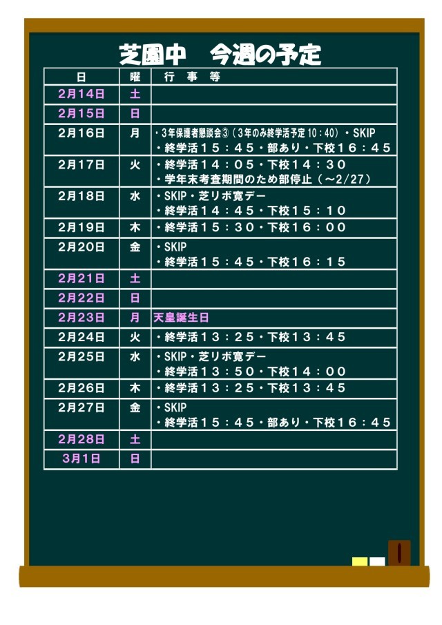 2/14~3/1の予定