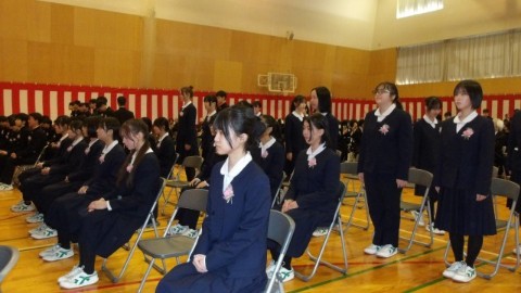 第77回 卒業証書授与式1 公開日 2026/03/12 更新日 2026/03/12 芝園の一日 晴れ渡った空の下、第77回卒業証書授与式が行われ、3年生113名が新しい門出を迎えました。人生の節目となるこの日を迎えた3年生は、緊張しながらも、今日の空のように晴れ晴れとした表情で入場してきました。 +1