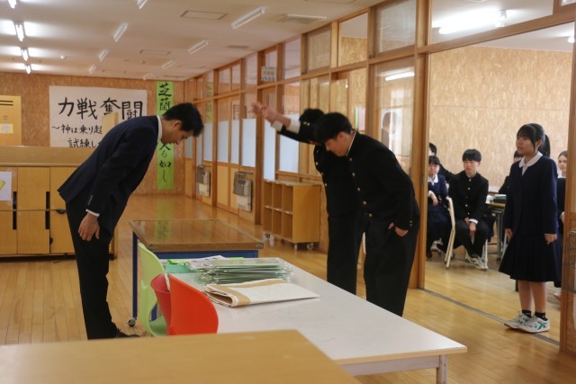 卒業式の動きを確認しました!県立一般入試が明け、柔らかな表情に包まれていました。