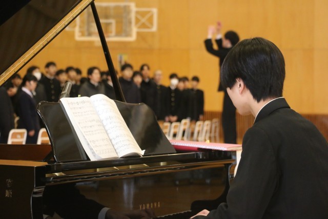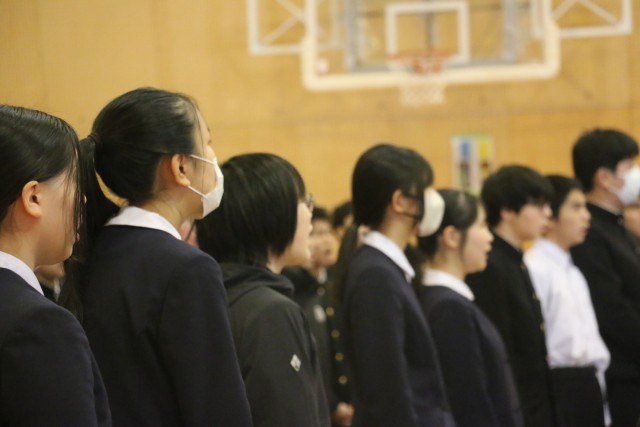 卒業式での歌う合唱を練習しました。3年間共に過ごした仲間との思いが、体育館中に響いています。