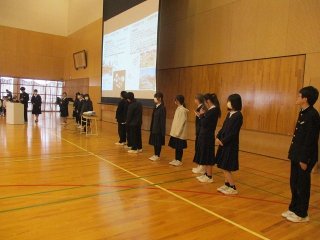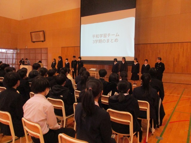 2学年 学年集会1 公開日 2026/03/23 更新日 2026/03/23 芝園の一日 最後の学年集会では、修学旅行に向けた、スローガン、平和学習、コース別、班別等、各グループ報告会がありました。来年度の修学旅行に向けてたくさんのメンバーが準備をしてくれました。きっと充実した活動になることでしょう。 +1