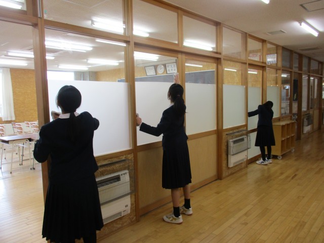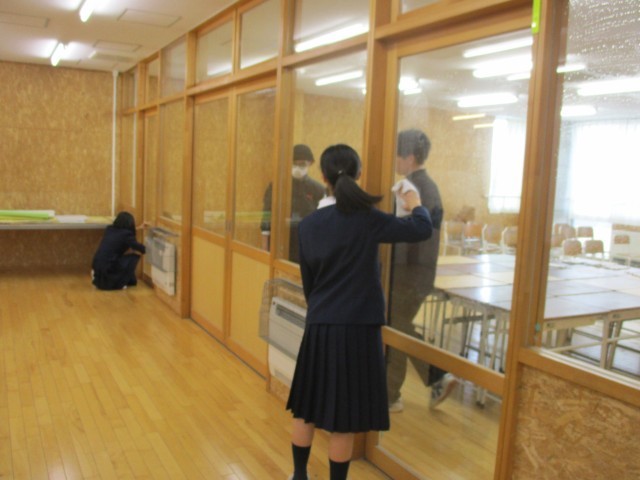 環境委員会では、最後の活動として、各学年の学習室の清掃を行いました。机・椅子の整頓、窓拭き、レールの掃除、黒板周り等、40分ほどの活動でしたが、みんなてきぱきと活動し、とてもさっぱりしました。来年度の準備を少し手伝うことができました。