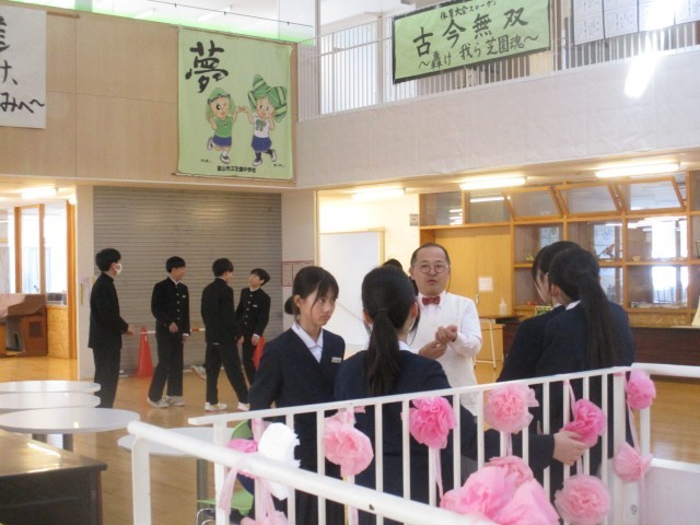 3学年 初めての学活 公開日 2026/04/09 更新日 2026/04/08 芝園の一日 初めての学活は、新担任の自己紹介からスタートしました。各クラス、担任の趣味や大切にしていることなどを話したり、クイズ形式にしたりしながら紹介され、和やかに進められました。どこか緊張感もありながらも、わくわくした表情が見られました。明日からの毎日が楽しみです。 +2