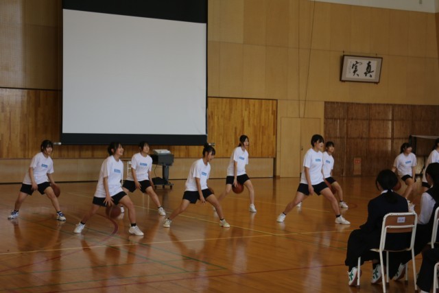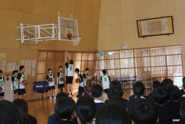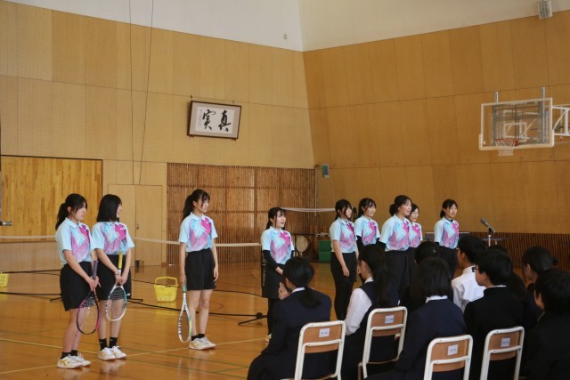 陸上競技部をスタートに、バドミントン部、野球部、剣道部、バレー部、卓球部、バスケットボール部、ソフトテニス部、美術部、コンピュータ部、吹奏楽部が説明と実演を行いました。