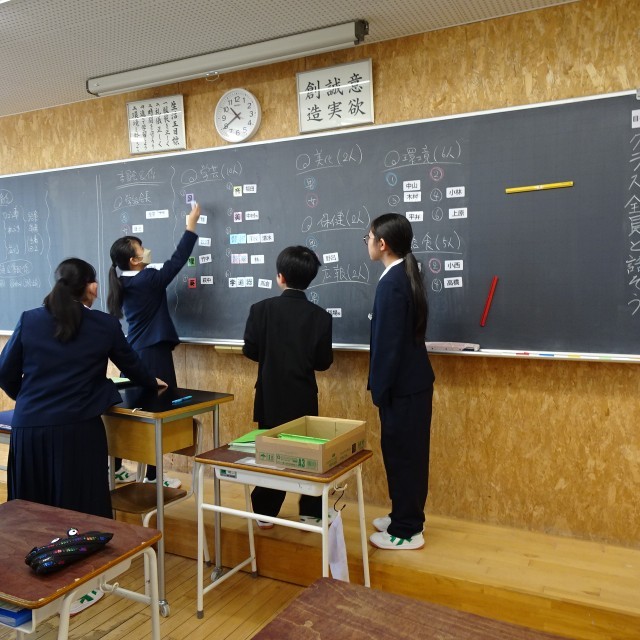 1年生 学活 公開日 2026/04/15 更新日 2026/04/15 芝園の一日 中学校生活が本格的に始まって3日目。1年生も随分中学校生活に慣れてきました。各学級では、クイズ大会をしたり、係決めをしたり、元気に活動しています。