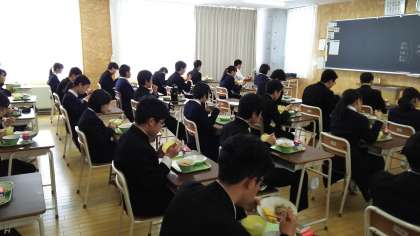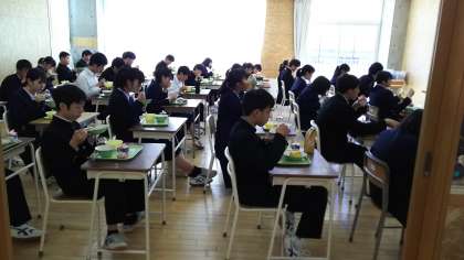 4月7日(水) 3年生の給食の様子です。 今年もコロナ対策で、全員が前を向いて食べています。