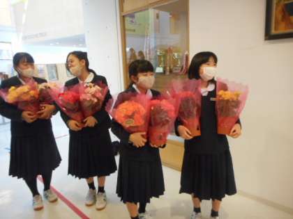4月7日(水) 体育館や教室に飾る花を運んだり、祝賀の掲示をしています。