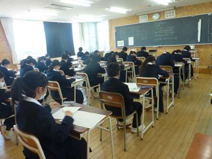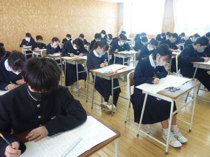新1年生の一日(その2) 公開日 2021/04/12 更新日 2021/04/12 芝園の一日 4月12日(月) 富山市学力調査に取り組む生徒の様子です。 中学校に入学してから初めてのテストに、真剣に取り組んでいました。 写真:A組