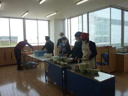 新1年生の一日(その7) 公開日 2021/04/12 更新日 2021/04/12 芝園の一日 4月12日(月) 給食の時間の様子です。 給食当番は2日目ということで、テキパキと準備をすることができました。 準備の間、他の生徒は静かに着席をして待っています。