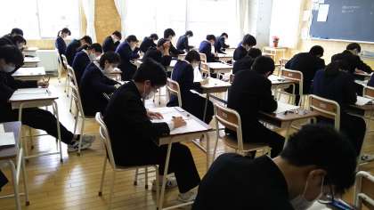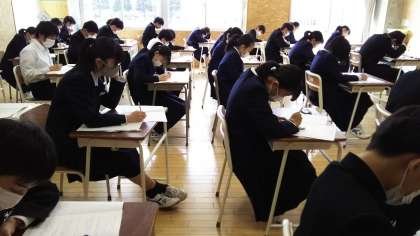 4月13日(火) 3年生の中教研学力調査二日目の様子です。 「社会」と「数学」に挑戦しました。
