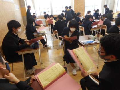 本日の授業(3年生) 公開日 2021/04/13 更新日 2021/04/13 芝園の一日 4月13日(火) 3年生の授業の様子です。 授業の進め方を真剣に聞き、どんな力を身につけたいか考えました。 英語の授業では、動詞の現在形、過去形、過去分詞をペアになってリズムよく声に出して覚えました。