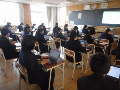 3年生は、初めて1人1台端末(タブレット)を用いて授業を受けました。