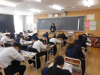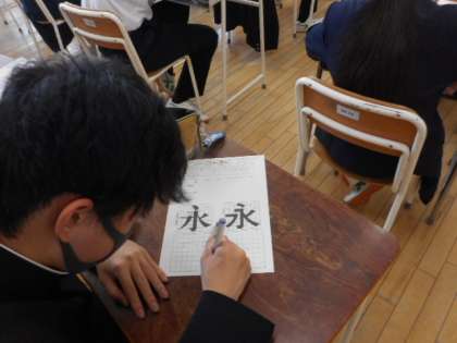 4月15日(木) 2年生の授業の様子です。 美術では、様々な字体のレタリングに取り組んでいました。