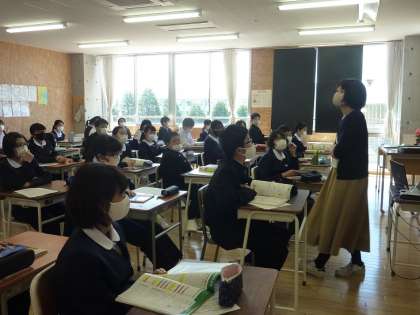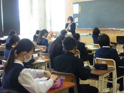 英語の授業では、授業のオリエンテーションの後、先生の、英語と日本語を交えた自己紹介を聞きました。