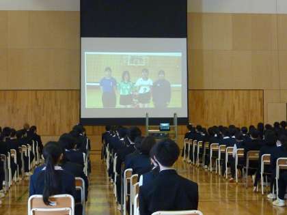 新1年生の一日(5日目:その6) 公開日 2021/04/15 更新日 2021/04/15 芝園の一日 4月15日(木) 部活動紹介の様子です。 部長の部紹介を聞いたり、各部で作成したDVDを視たりしました。 その後、部活動担当の先生に部活動の心得を話していただき、最後に校長先生のお話を聞きました。