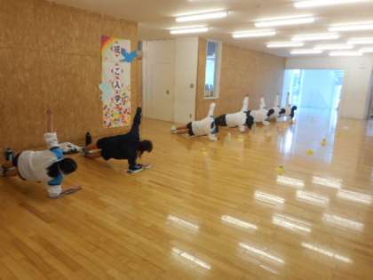 今日の部活動(その4) 公開日 2021/04/17 更新日 2021/04/17 芝園の一日 4月17日(土) 女子ソフトテニス部は、天候不良のために屋内で活動しました。 体幹トレーニングに励んでいました。