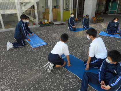 4月20日(火) 1年生の体験入部の様子です。 晴天の青空の下、元気いっぱい取り組んでいます。