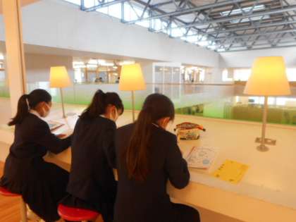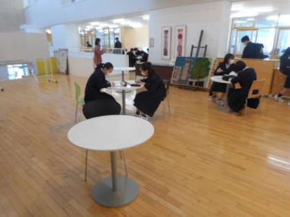 教室以外の場所でも、友達と一緒に学習に励んでいました。