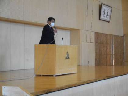 実行委員長から「制限があるなかで、全員の力を合わせ、思い出に残る体育大会にしよう」という挨拶がありました。