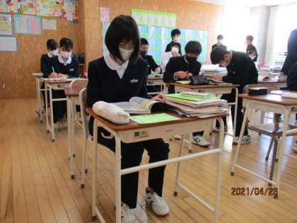 どこでもSKIP!(その1) 公開日 2021/04/26 更新日 2021/04/26 芝園の一日 4月26日(月) 今朝も、思い思いの場所で「どこでもSKIP!」に取り組んでいます! 2年生は、理科の小テストに向けて「元素記号」を確認しました。