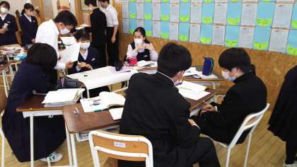 「アイスプラネット」という教材で「同心円チャートで、『僕』のぐうちゃんへの気持ちをよみとろう」という課題にグループで取り組みました。