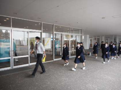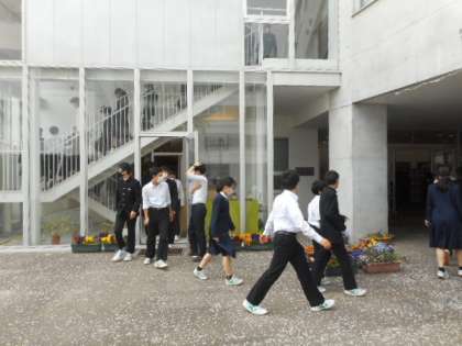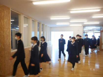 6限に「避難訓練」を行う予定でしたが、強風のため予定を変更し「避難経路確認」を行いました。