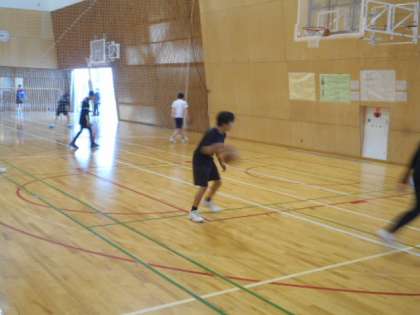 男子バスケットボール部は、ドリブルドリルに取り組んでいました。