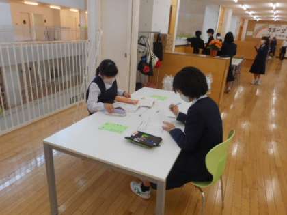 今年も「どこでもSKIP」ということで、教室以外の多目的スペースを利用して学習している生徒もいます。