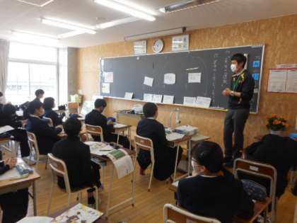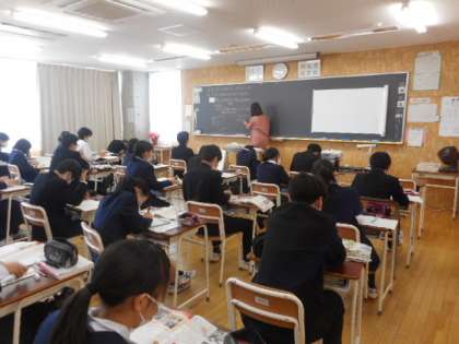 社会の授業では、課題についてワークシートに書き込みながら要点を確認しました。