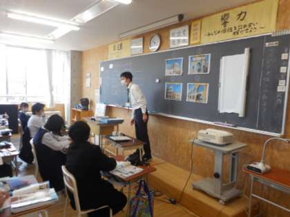 社会の授業では、4枚の写真を手がかりに、古代ローマとギリシャの建築や文化について考えました。